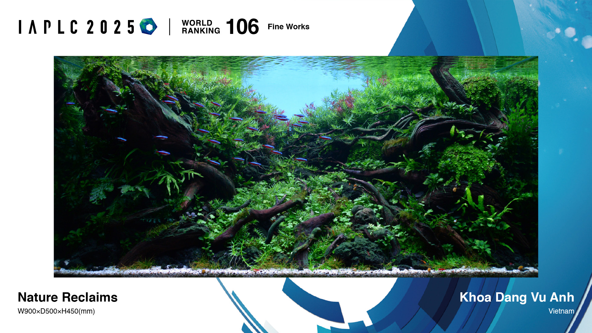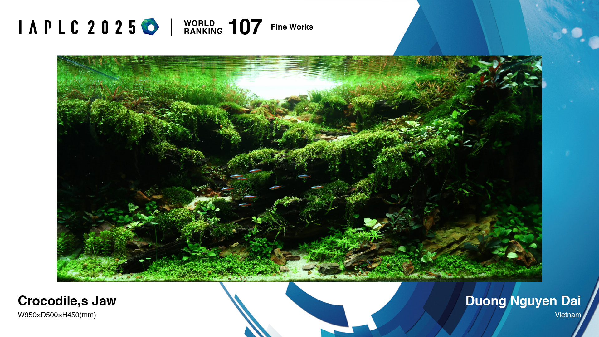 YEAR : 2025 2024 2023 2022 2021 2020 2019 2018 COUNTRY & AREA : -- Angola Argentina Australia Austria Belgium Brazil Bulgaria Canada Chinese Taipei Colombia Costa Rica Croatia Czech Republic Egypt France Germany Great Britain Greece Hong Kong, China Hungary India Indonesia Islamic Republic of Iran Italy Japan Malaysia Maldives Mauritius Mexico Mongolia Mozambique Nepal Netherlands North Macedonia People’s Republic of China Philippines Poland Portugal Republic of Korea Romania Russian Federation Serbia Singapore Slovakia South Africa Spain Sri Lanka Thailand United States of America Vietnam WORKS : -- Grand Prize Gold Prize Silver Prize Bronze Prize Honor Prize Winning Work Fine Works RANK : -- 1 - 60 61 - 120 121 - 180 181 - 240 241 - 300 301 - 327 ※The copyright of IAPLC entries belongs to Aqua Design Amano Co., Ltd. Use of any entry work on publications and/or internet without consent of Aqua Design Amano Co., Ltd. is strictly prohibited. 1 2 3 4 5 6 7 8 9 10 0091 Milos Nikolic Serbia 0092 Aldrin Taroy Canada 0093 Jullawong Prapantha Thailand 0094 Frank Sebastiao Canada 0095 Ong Tan Huy Cuong Vietnam 0096 Hiroyuki Hokari Japan 0097 Benjamin Stofferus Belgium 0098 Adrian Lepe Mexico 0099 TATSUYA UCHIDE Japan 0100 Yasutoshi Ohta Japan 0101 Wasin Lertpornchaimongkol Thailand 0102 Hironori Handa Japan 0103 Tatsuya Sugimoto Japan 0104 Cliff Hui Hong Kong, China 0105 Huynh Hai Vietnam 0106 KHOA DANG VU ANH Vietnam 0107 Duong Nguyen Dai Vietnam 0108 Bang Huynh Vietnam 0109 Jie Zhang People’s Republic of China 0110 Vladimir Tomek Czech Republic 0111 Hayakawa Masanori Japan 0112 Byron Olavere Philippines 0113 Haruka Oohori Japan 0114 Marcelo Takeno Brazil 0115 Guillaume Debacker Belgium 0116 Younghun Cho Republic of Korea 0117 Huy Nguyen Vietnam 0118 Park Junwoo Republic of Korea 0119 Thanh Tran Vietnam 0120 Abhirup Dasgupta India 1 2 3 4 5 6 7 8 9 10